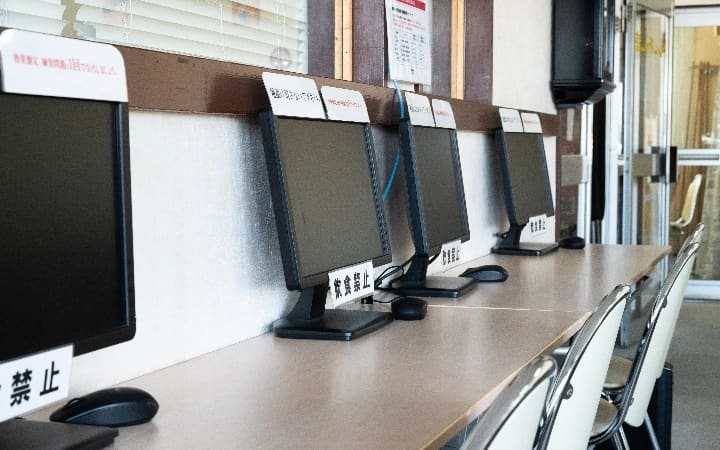 教習所内にはFREE Wi-Fiをご用意しており、教習待ち時間はロビーでゆっくり過ごすことができます。教習で疲れたときは、ロビーで一息つきましょう。